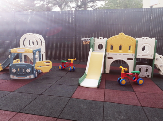 Le jardin de 50m2, clôturé et doté d'un espace dédié au potager, permet à nos petits explorateurs de découvrir la nature de manière ludique et éducative. La connexion avec la terre et les cycles naturels fait partie intégrante de notre approche pédagogique.